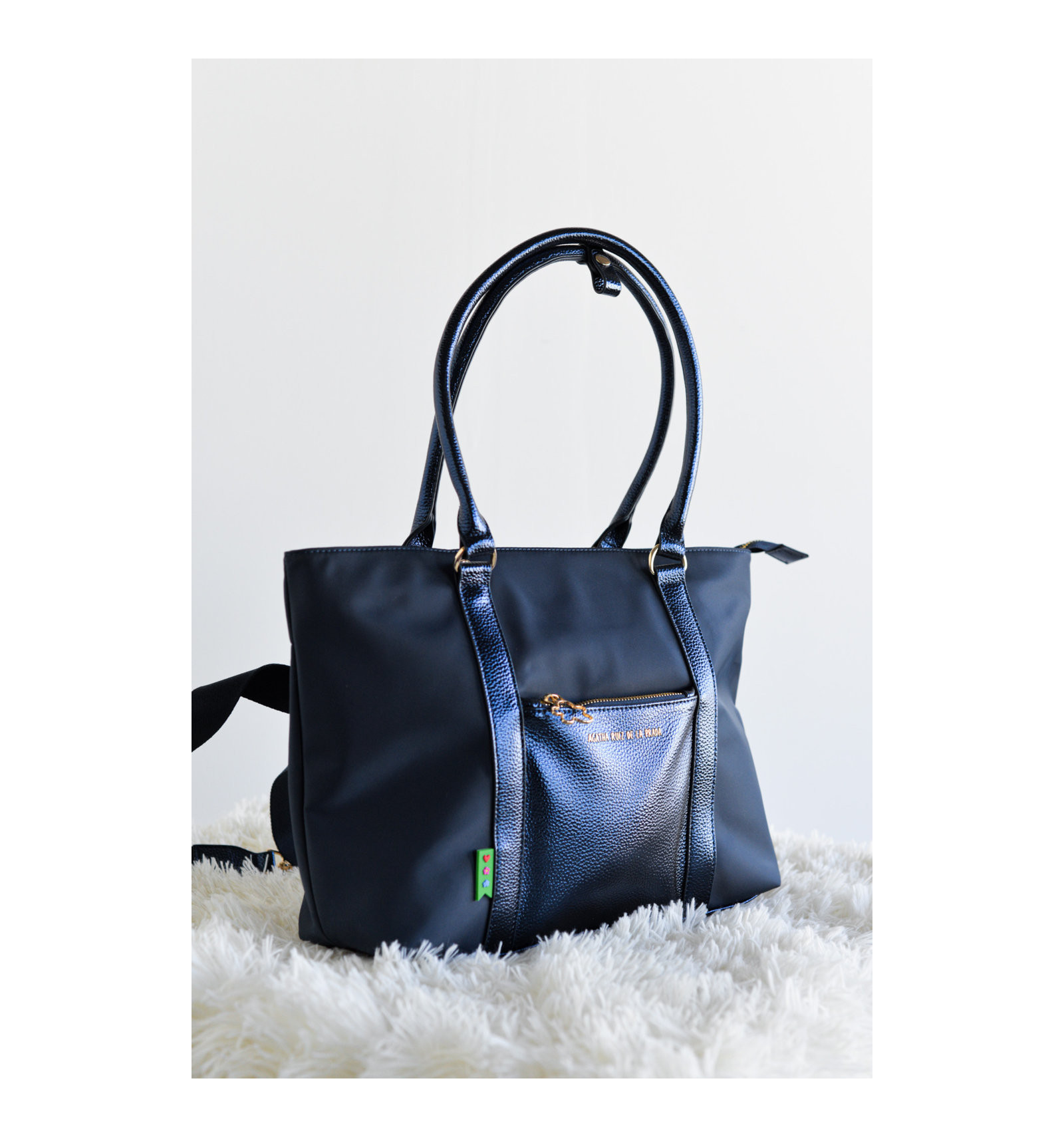| Material | Nylon y piel sintética efecto metalizado. |