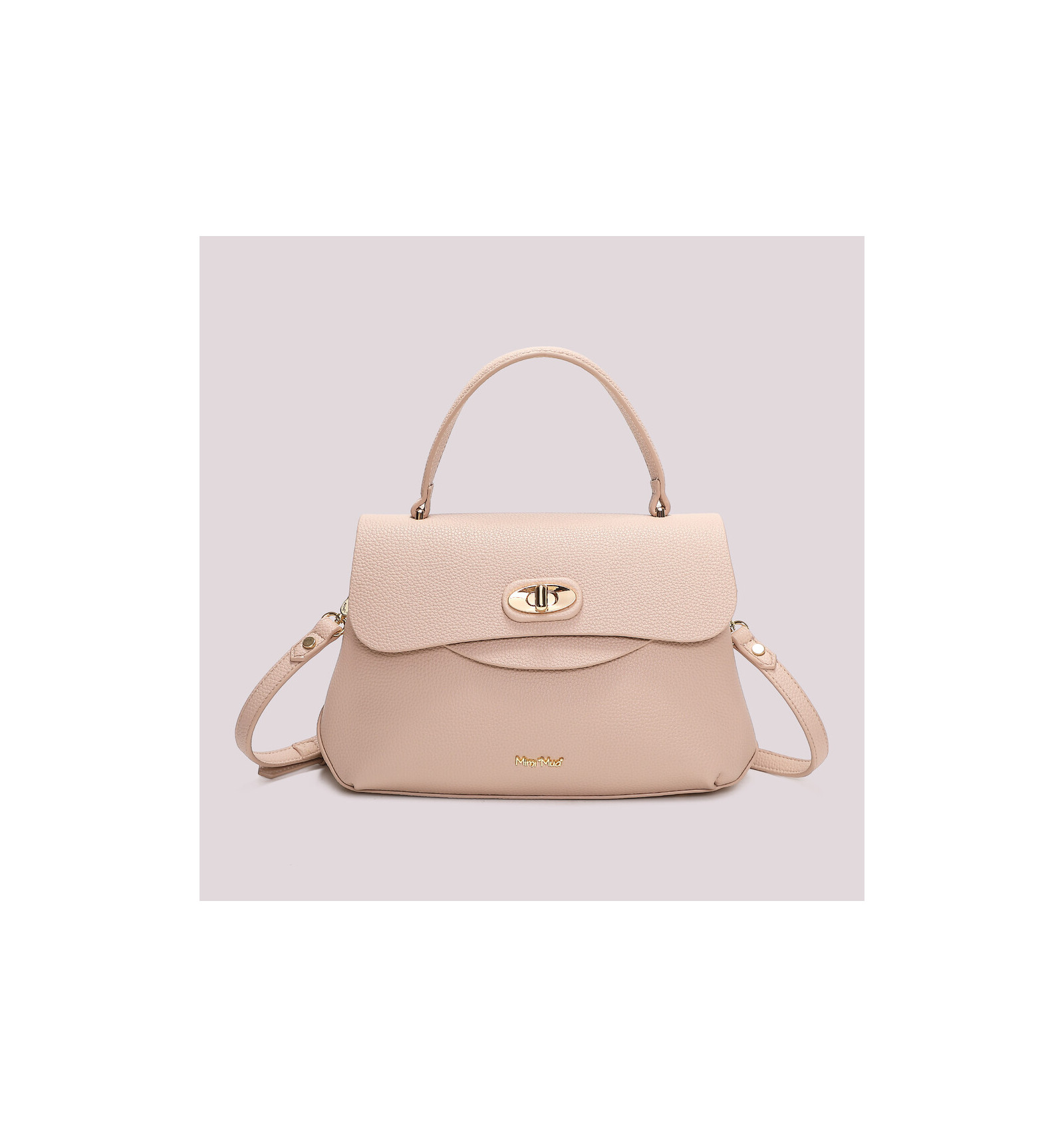 Cierre con solapa y broche giratorio.