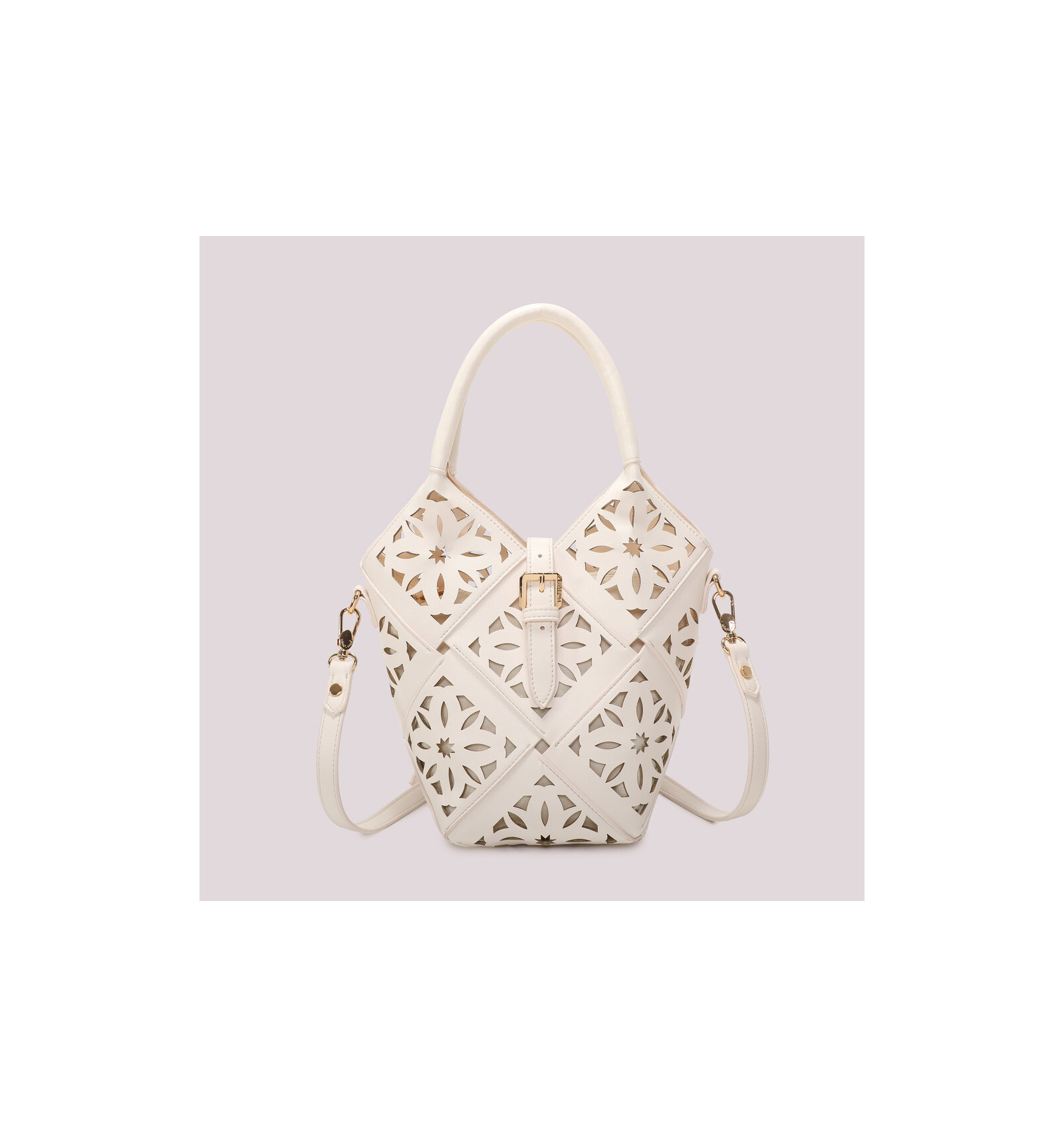 Colección Traforato, en piel sintética perforada haciendo un dibujo estilo mosaico.