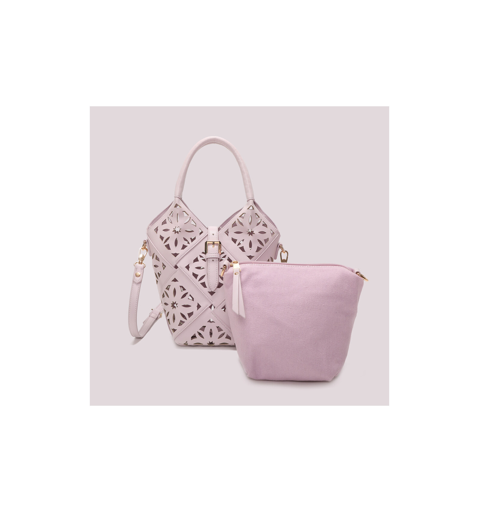 Colección Traforato, en piel sintética perforada haciendo un dibujo estilo mosaico.