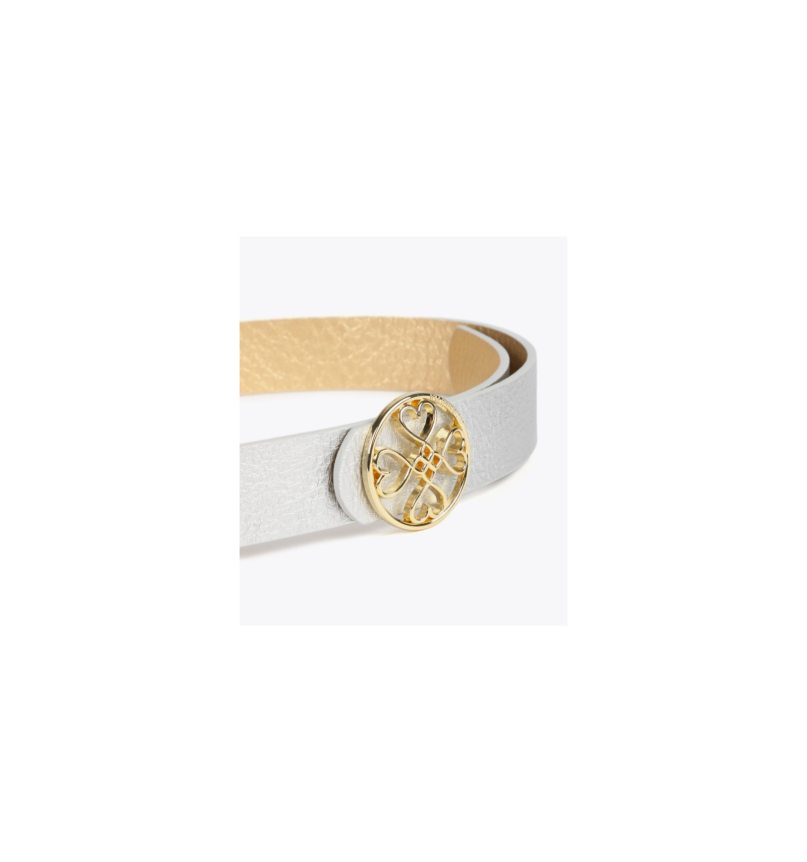 Cinturón Trébol, reversible en dorado y plata con chapón en metal dorado.